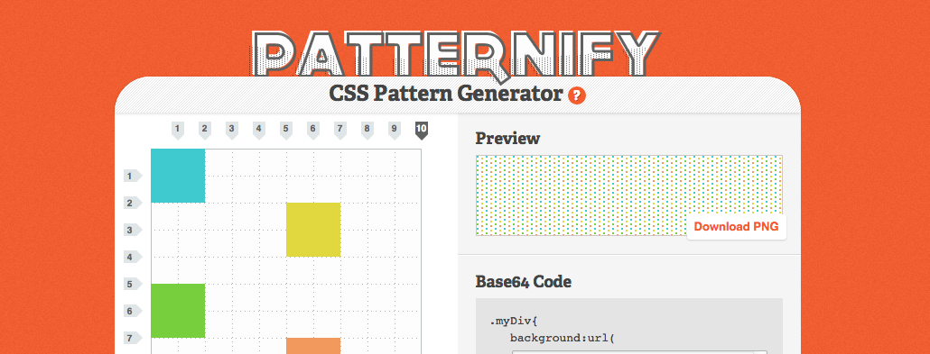 A CSS pattern tool which allows you to edit colour, texture and opacity to aid in your web projects to create that perfect pattern.