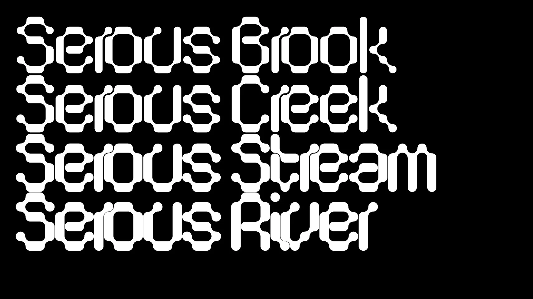 Serous is very distinctive at large display sizes. The typeface is not intended for use at text sizes or as large gallies of text. The letter spacing is defined by a pin line that separates each character. The most dynamic results are often achieved by using settings that create the same pin line in the leading as is present in the kerning.